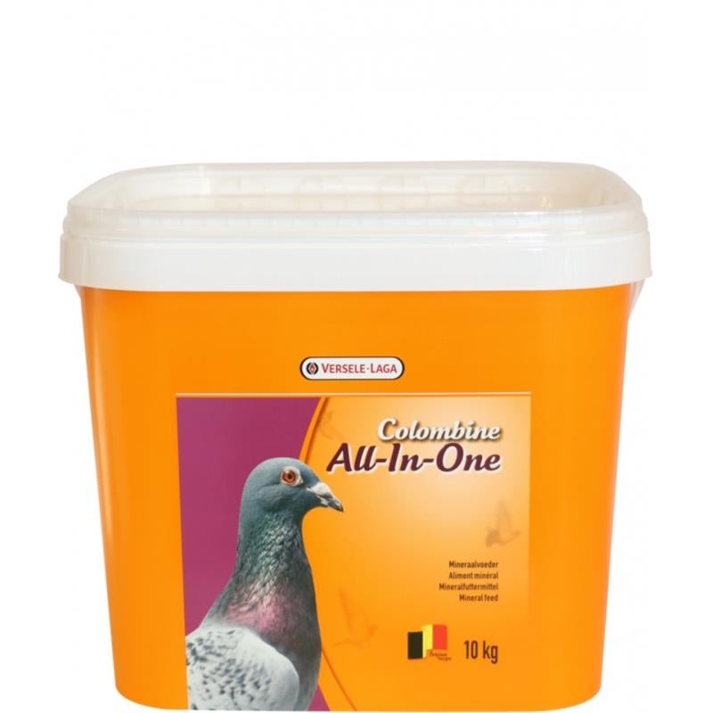 Colombine All in One 4 Kg. Mineral ve vitaminler güvercinlerin metabolik işleyişinin devamı, kemik ve kaslar için önemlidir.Colombine All in One, minerallerin haricinde özenle seçilmiş tohum ve sebze ürünlerini de içerir. Yarış ve üreme sezonuna hazırlanan güvercinler için mutlaka kullanılması gereken bir üründür. İçindekiler: Deniz kabuğu, kızıl toprak, kil, küçük tohumlar, kursak taşı, maya, tuz. Günlük kullanım miktarı: 10 güvercin için bir kase kadar yeterli olacaktır. Bitince yenileyiniz.